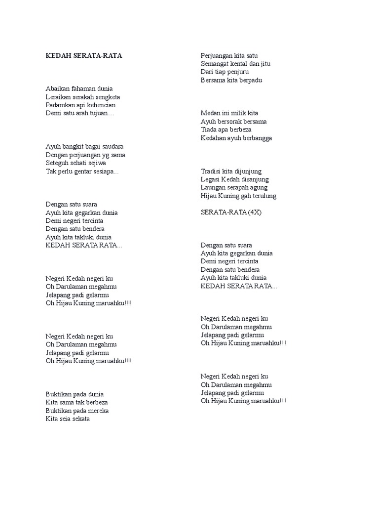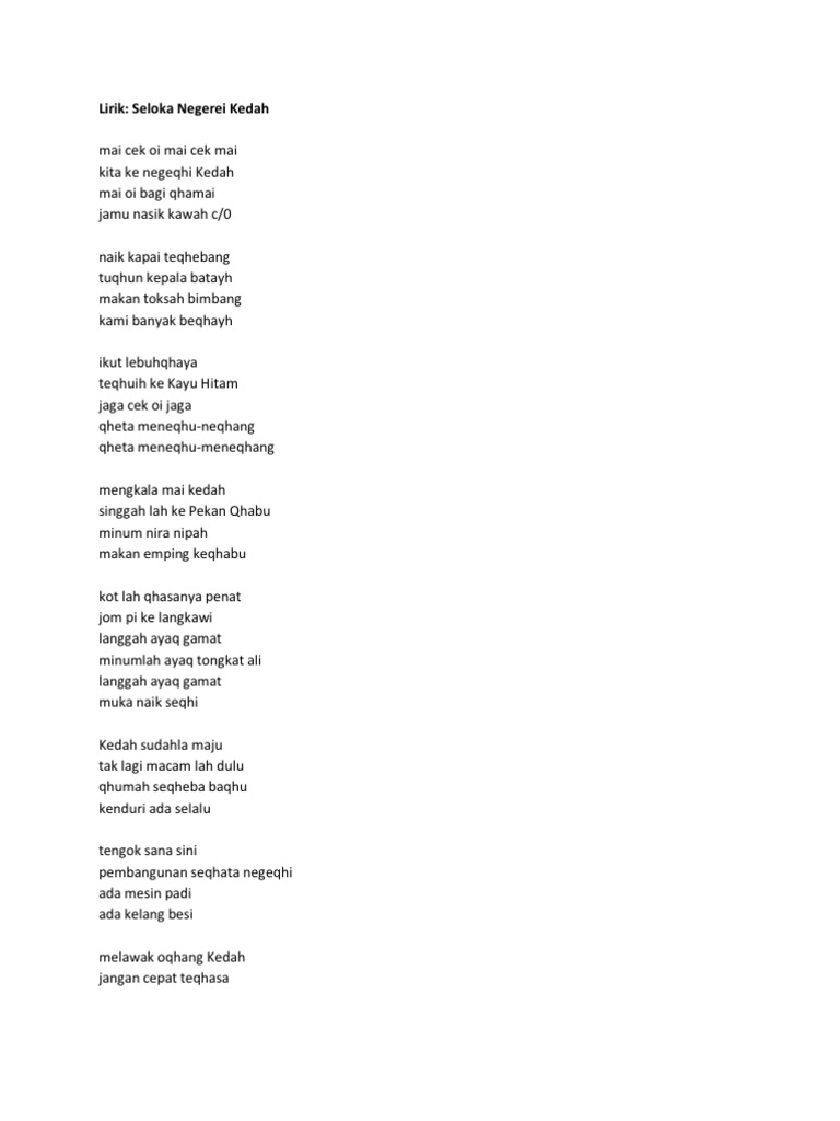 Lirik Lagu Negeri Kedah Lagu Negeri. Top 10 Lirik Popular. Lirik Lagu Negeri Kedah Lagu Negeri.